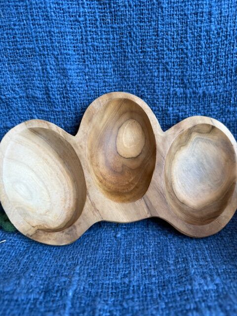 Bring natural elegance and practical versatility to any space with this handcrafted 3-part oval tray. Its smooth, curved design makes it perfect for organizing small items, serving snacks, or displaying treasures, while its divided sections allow for sorting, mixing, or separating different materials. Children can also use it in imaginative play, such as arranging pretend meals, creating sensory activities with rice, sand, or water, or setting up small-world scenes. A beautifully simple, functional piece that adds both charm and creativity to your home or playroom.