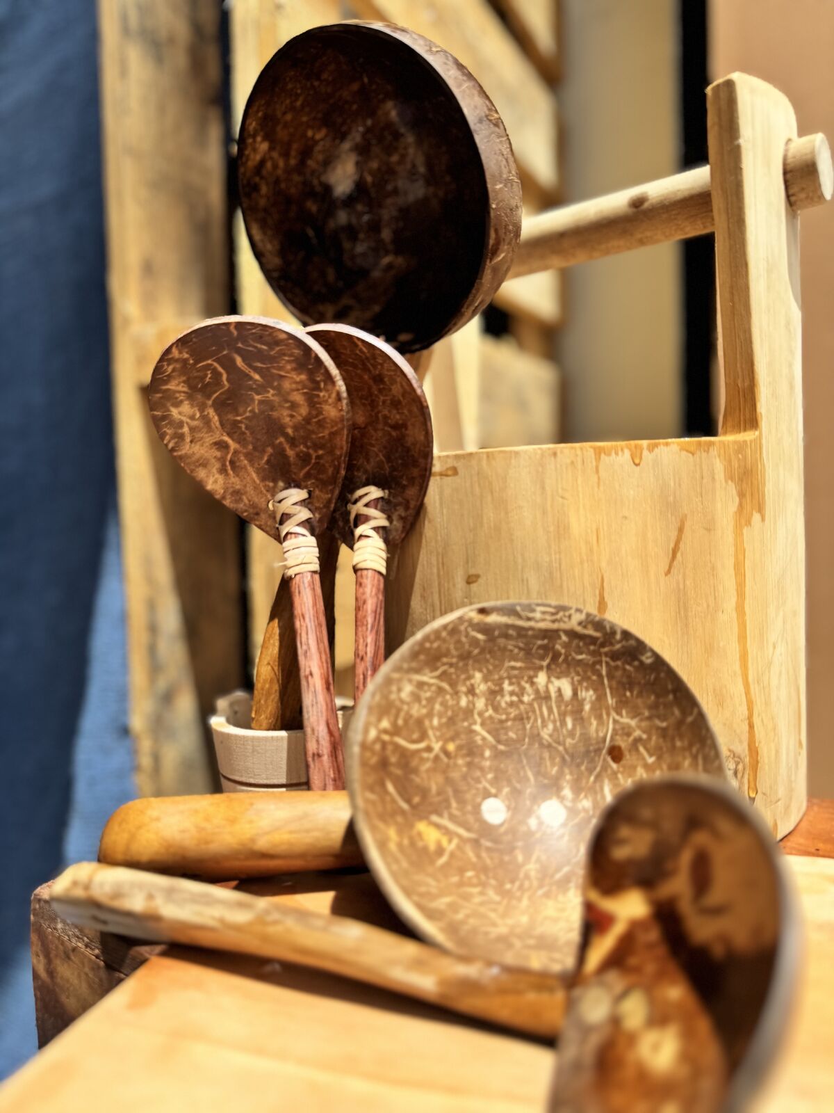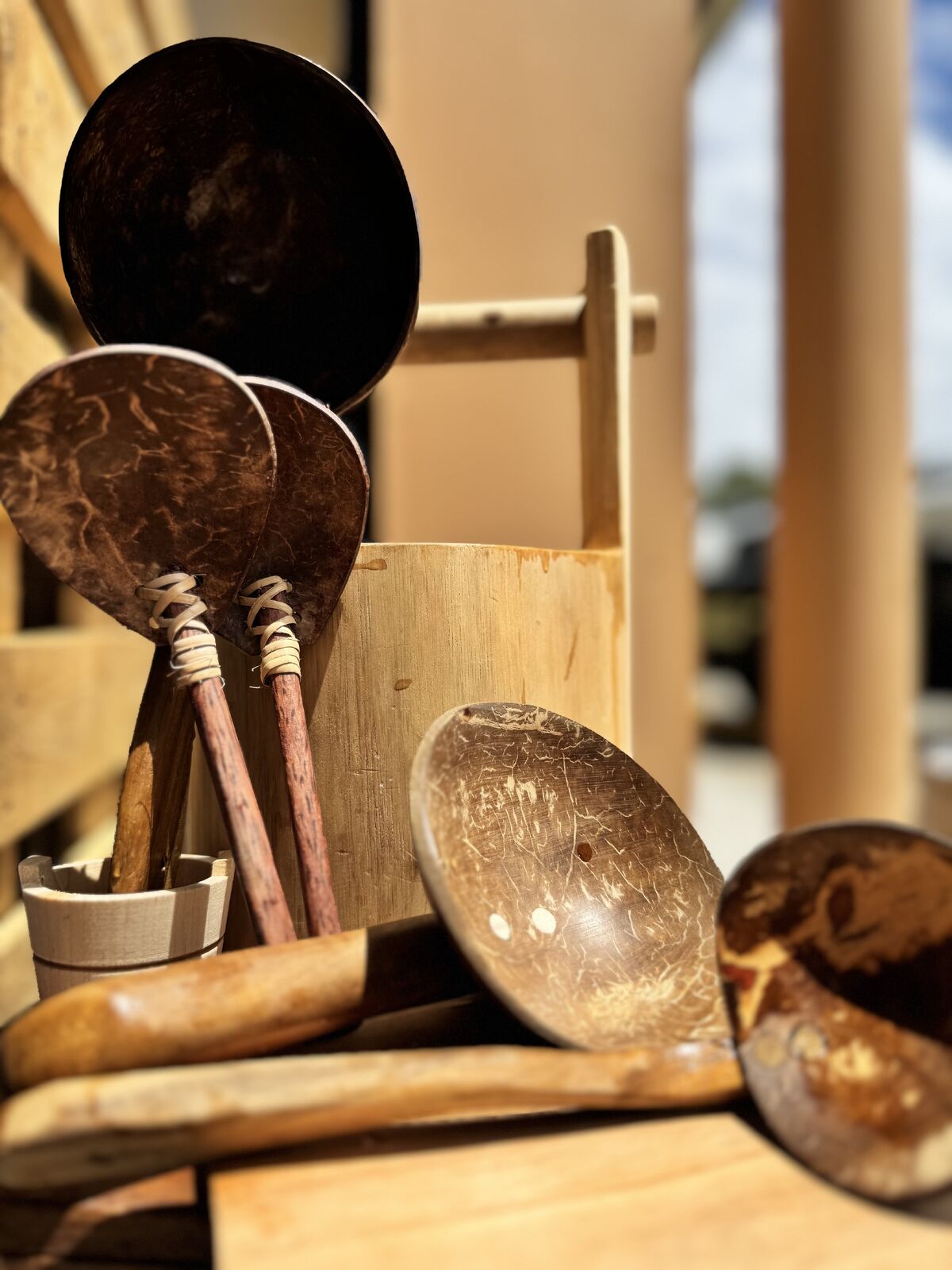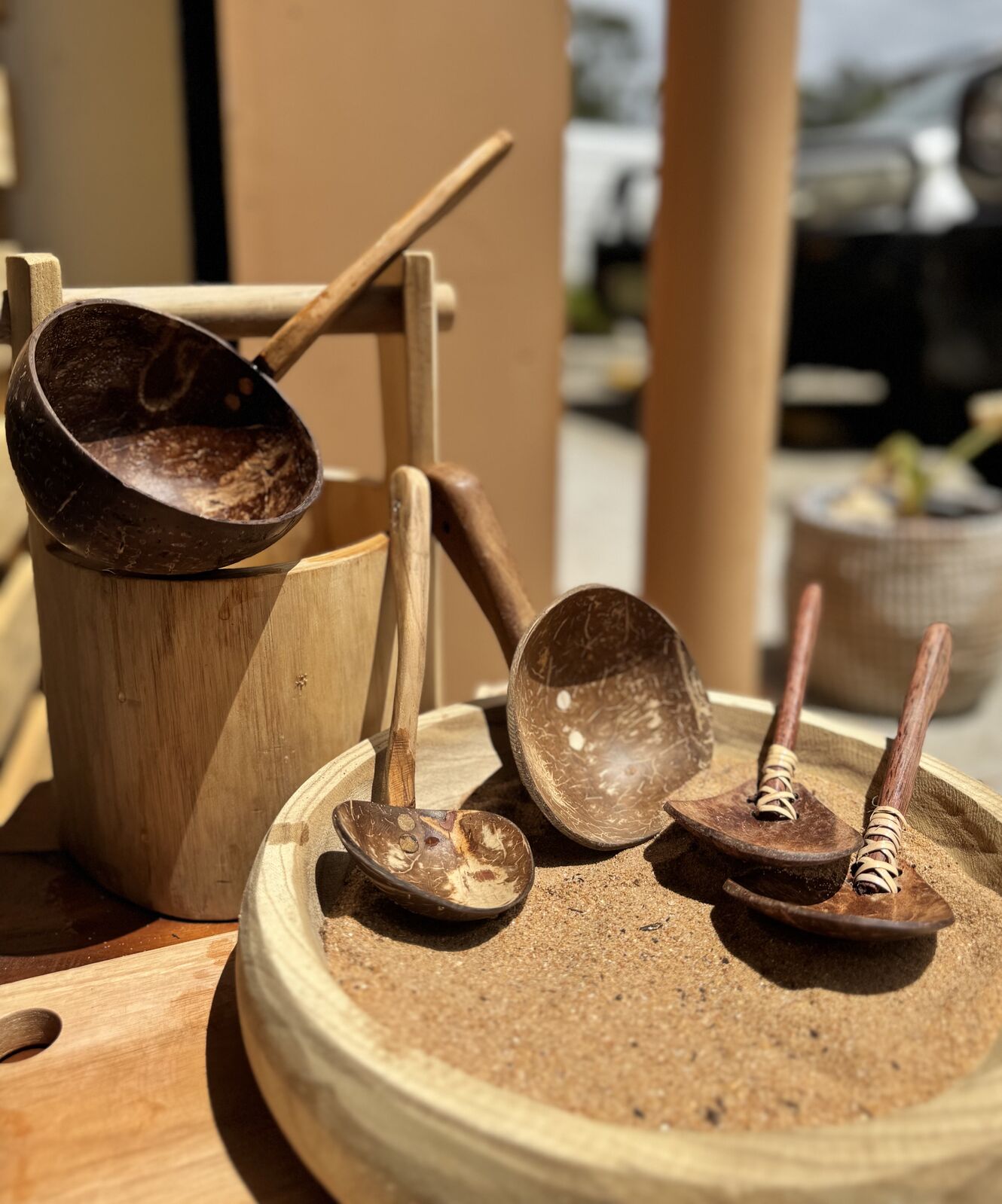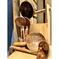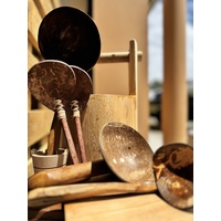 This set of 5 coconut shell scoops in assorted sizes is perfect for sensory and loose parts play. Made from natural coconut shells with wooden handles, they are ideal for water play, sand, mud kitchens and sensory trays. The varied sizes invite children to explore volume, pouring and transfer while supporting fine motor skills and imaginative play. Designed for indoor use due to handmade woven joins.