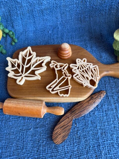 A beautiful, nature-inspired dough play set designed for hands-on learning and open-ended play. This set includes a wooden dough board, rolling pin, wooden knife, leaf cutters, honey dipper and two mini bee hives. Perfect for childcare and early learning environments, it supports fine motor development, creativity and sensory exploration as children roll, cut, press and create. Ideal for playdough, clay and sensory play areas.