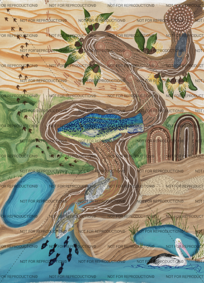 Emma Stenhouse is a proud Ngarrindjeri woman and a contemporary Indigenous artist on a journey of self discovery, deepening her connection with her family, exploring her heritage, and inspired by her love of Country. Emma encapsulates her knowledge in her storyworks formed by her deep relationship to land and guided by strong female role models in her community.
