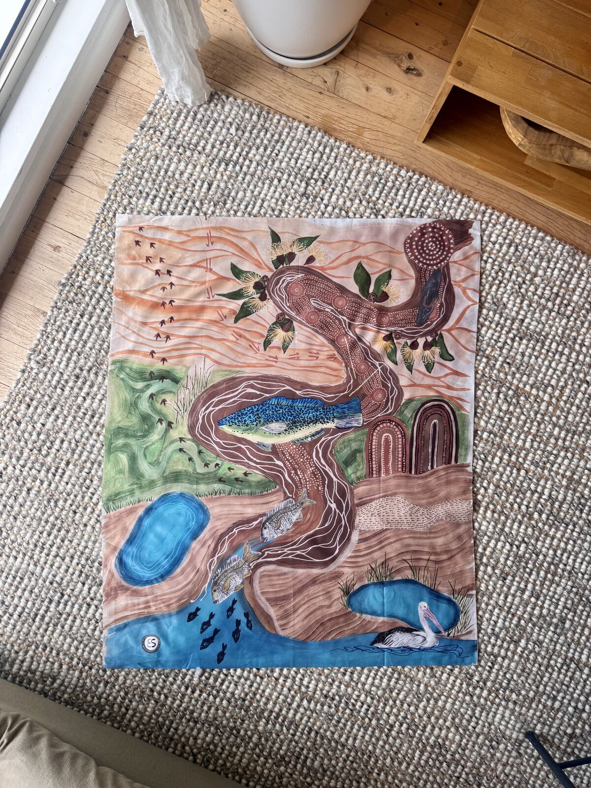 Bring the story of Ngurunderi and the creation of the River Murray into early childhood learning. This vibrant playsilk encourages imaginative play, storytelling, and sensory exploration, supporting EYLF outcomes of identity, community, and connection to the world.