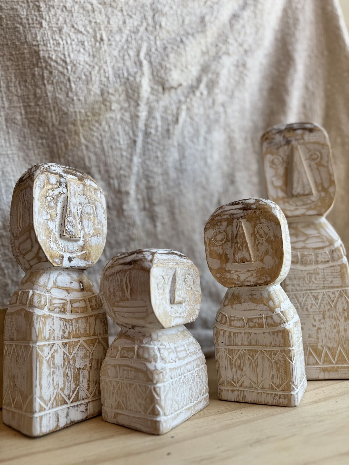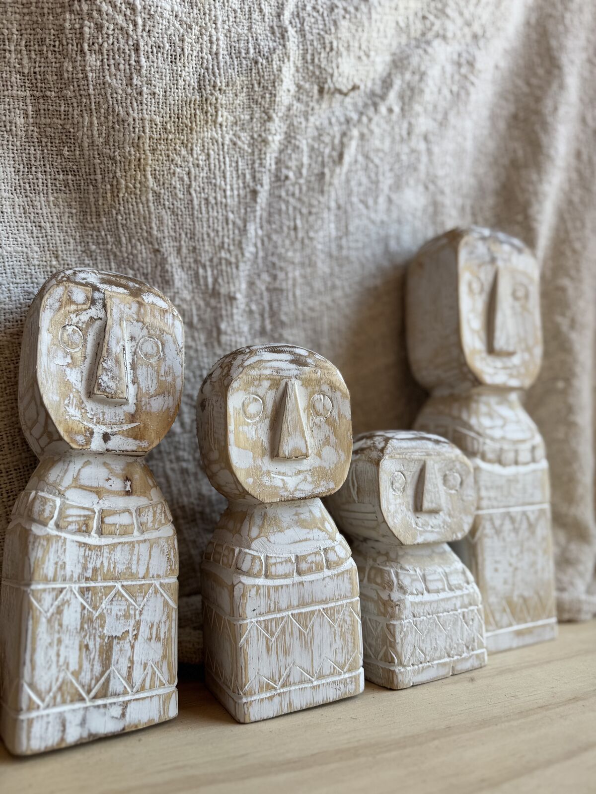 This set of hand-carved wooden figures invites open-ended play and storytelling for children of all ages. With soft, neutral tones and simple facial features, the figures can represent family members, friends or community roles, allowing children to create their own stories and worlds.They are perfect for small world play, loose parts setups, shelf displays or storytelling prompts, while also serving as a beautiful decorative piece in the home or learning space. Designed to inspire imagination, connection and gentle play.