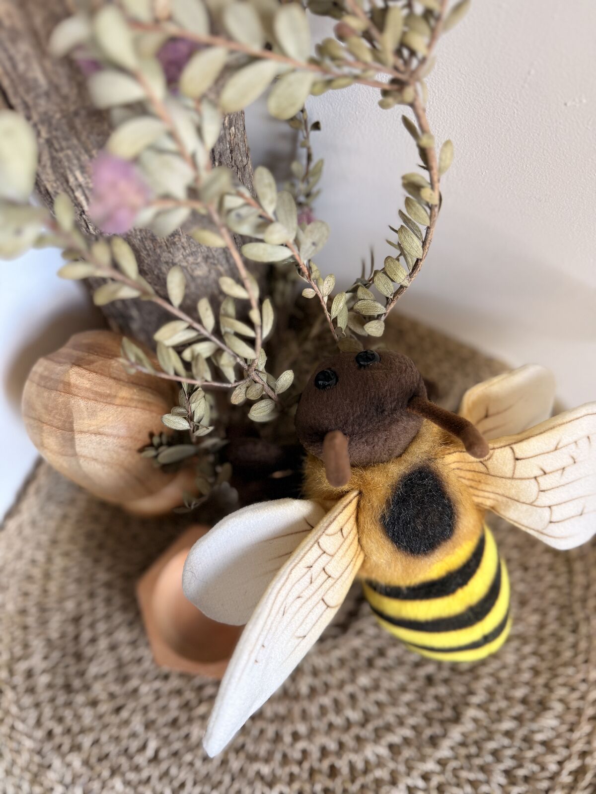 The 22cm Honey Bee plush encourages sensory exploration and curiosity about nature. Soft and friendly, it supports children’s wellbeing and fosters a sense of connection to the environment, aligned with EYLF outcomes for identity and sustainability.