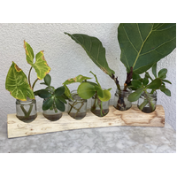 This sustainable wooden raw edge paint jar holder comes complete with resealable jars. The secure fit of the jars in the holder makes spills less likely!