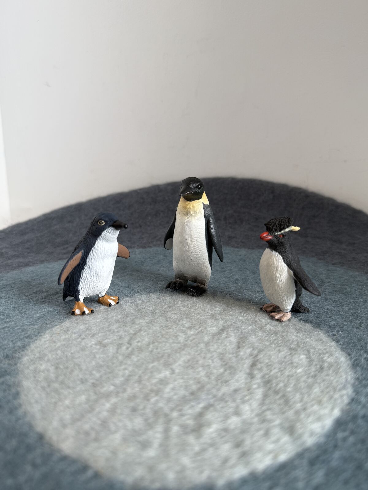 Perfect for small-world, imaginative play, educational learning, or display, this set features three unique penguin species in lifelike detail. Little blue penguin - the smallest penguin species, with its signature bluish features. Emperor Penguin - tall and elegant, with its iconic yellow chest markings. Rockhopper penguin - full of personality, complete with bright yellow crests and a red beak.