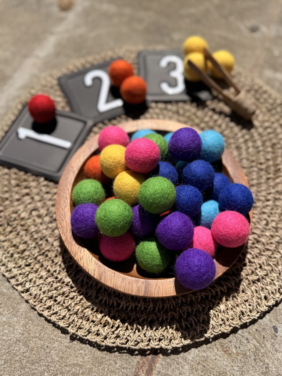 Let the little ones explore, sort, learn - all while having fun with these beautiful, colourful felt balls!