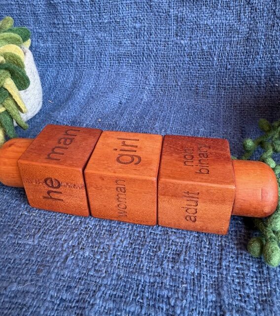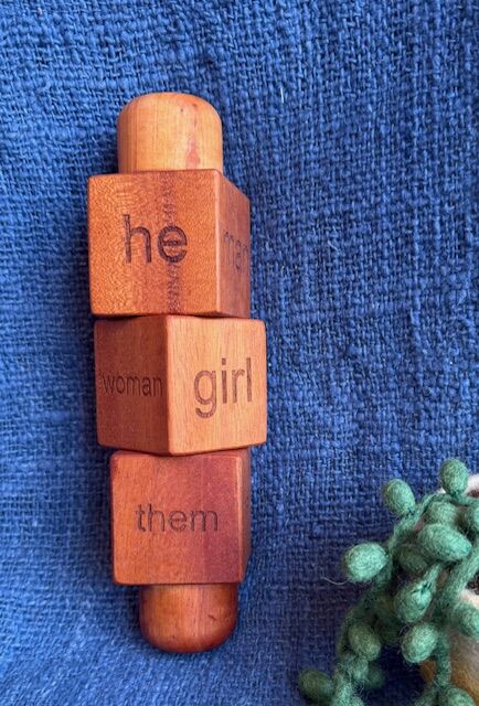 Perfect for circle time discussions, storytelling activities, and language development exercises, our wooden rod with gender pronouns encourages meaningful conversations about identity, diversity, and respect for others.