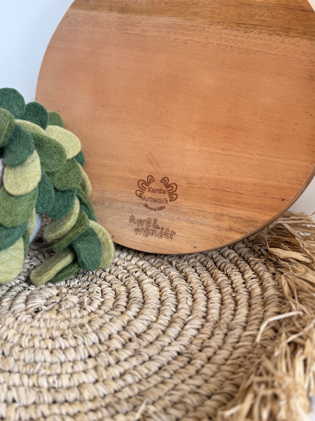 This unique piece is perfect for early childhood education, providing a tactile and visual tool that celebrates cultural heritage while fostering creativity and exploration. Ideal for sensory play, storytelling, and art activities, encouraging children to explore and discuss the meanings behind the designs as told by artist Simone Hills.