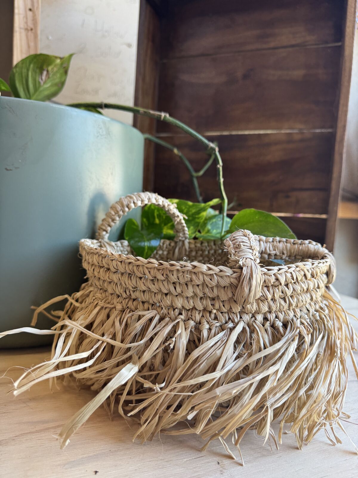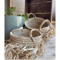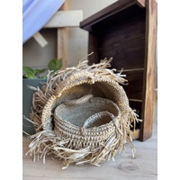 This handwoven fringe basket is crafted from natural straw fibres and features a soft, organic form with textured fringe and sturdy side handles. Designed for use in early childhood settings, it is ideal for storing and transporting open-ended resources and collecting natural materials such as shells, leaves, stones, and seed pods. Its tactile qualities encourage sensory exploration and creativity, while its purposeful use supports children’s involvement in caring for their learning environment and fosters a meaningful connection to natural materials through open-ended play, supporting EYLF outcomes.