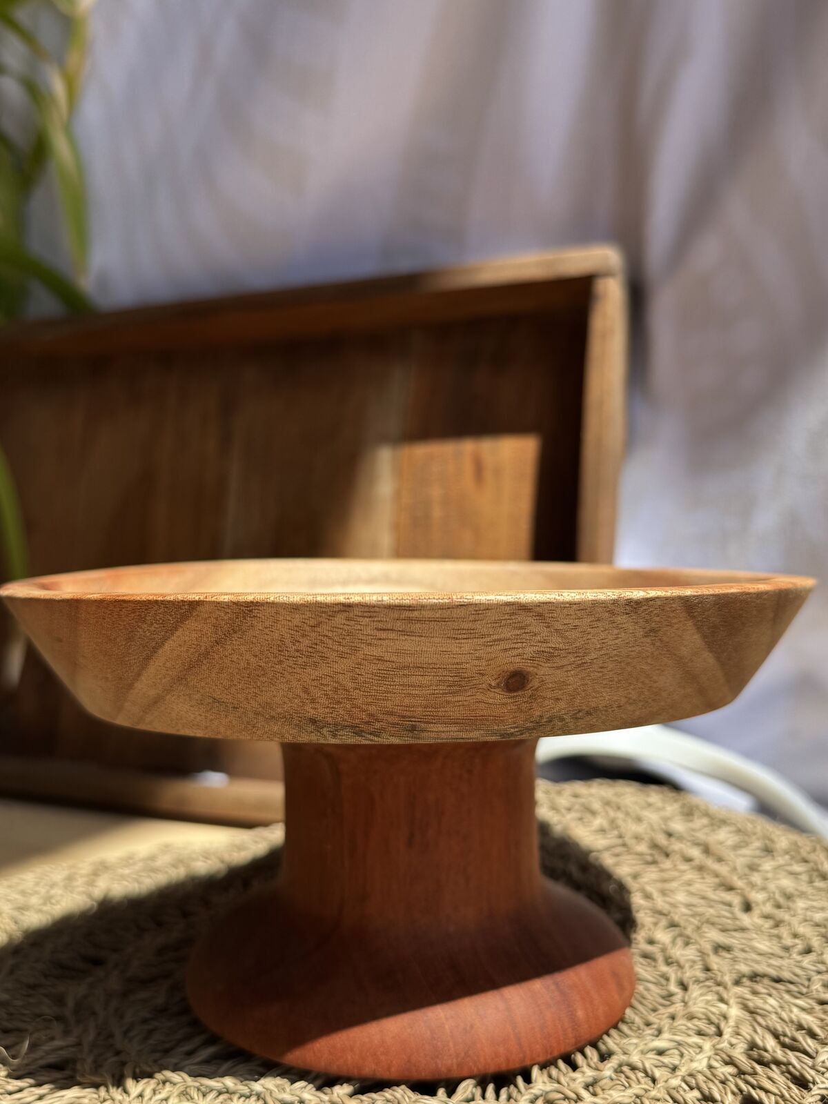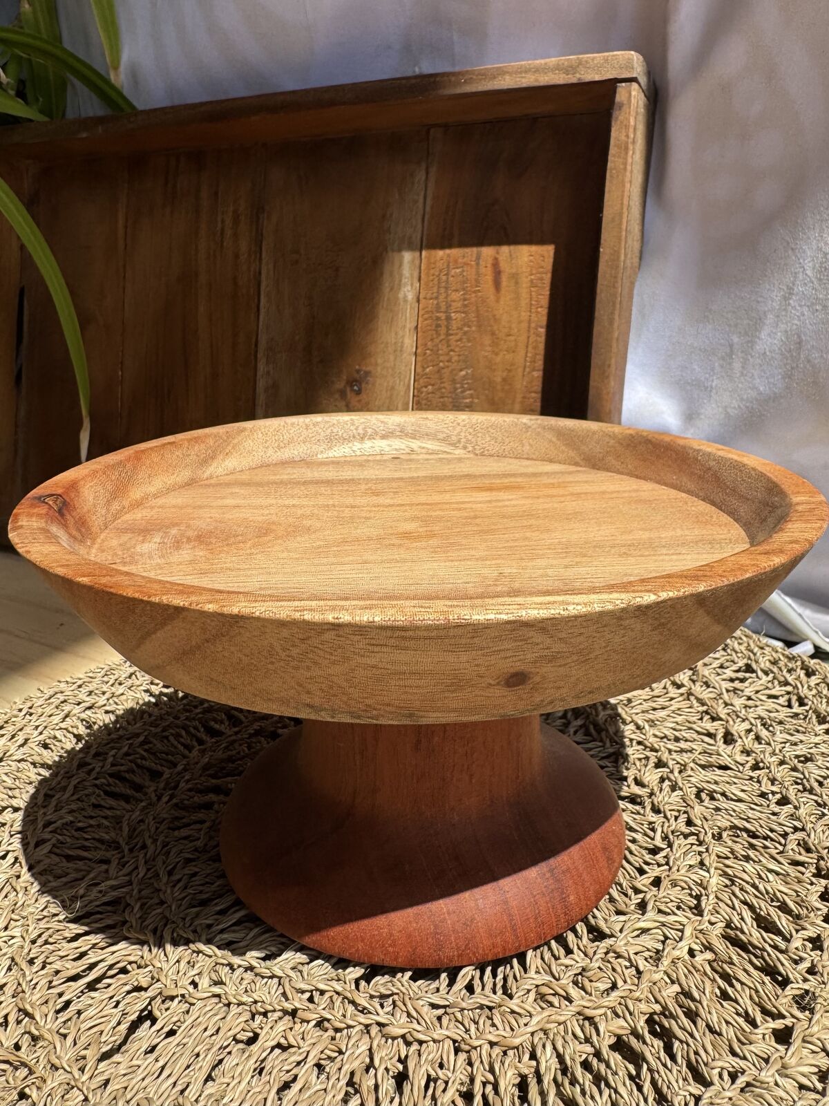 This wooden pedestal is crafted from solid natural wood and features a smooth, shallow platform with a stable raised base.It is ideal for presenting loose parts, sensory materials, learning provocations, or shared snacks at an accessible height. Its natural texture and simple form encourage calm engagement, support independent choice, and invite children to interact respectfully with materials, fostering a meaningful connection to natural materials through open-ended play and supporting EYLF outcomes.