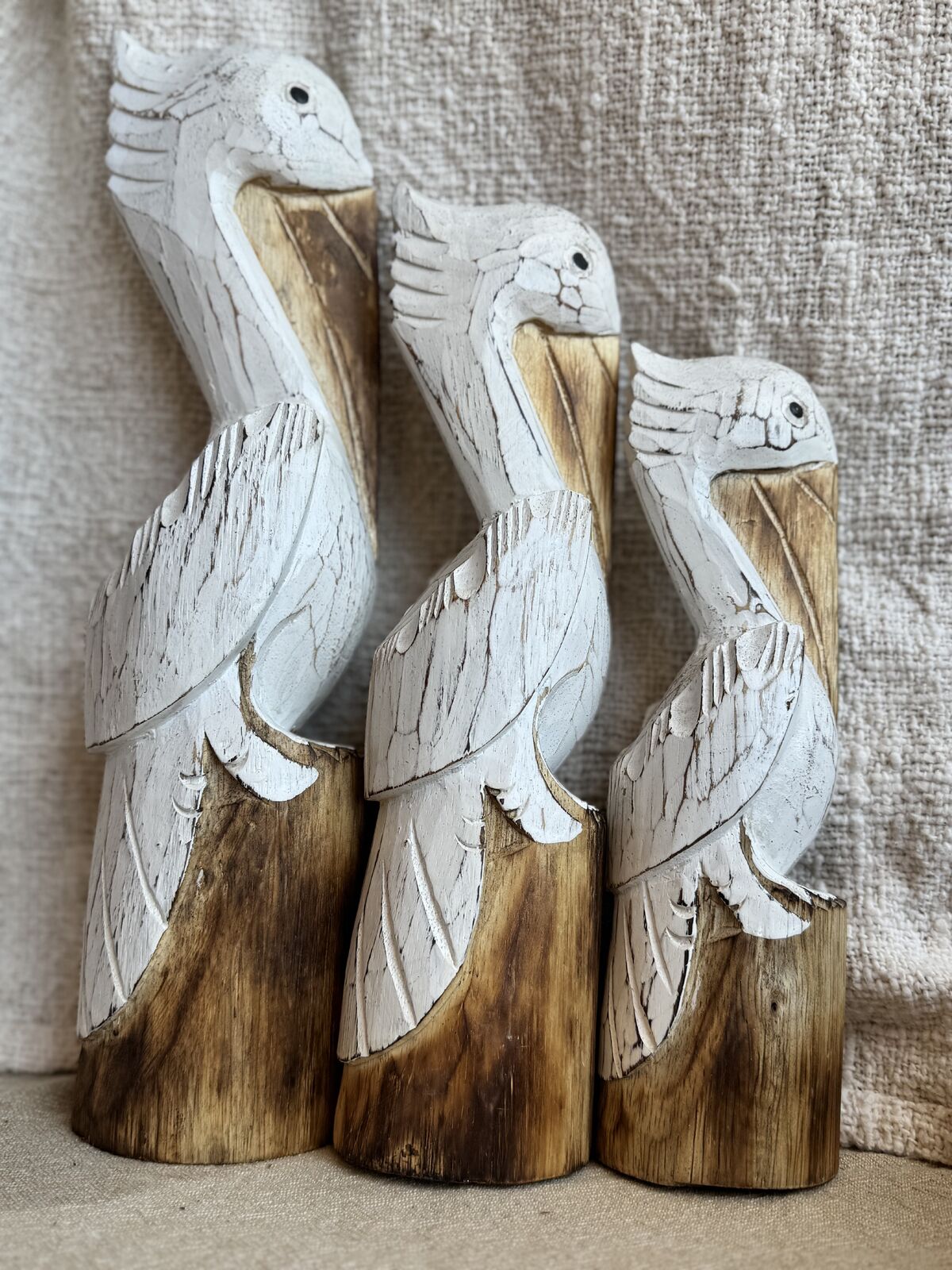 The Wooden Pelicans Set of 3 is a charming, open-ended play resource designed to inspire imagination and storytelling. Featuring three pelicans in graduating sizes, each painted white with a flat circular base, this set is ideal for small-world play, loose parts exploration, and display.